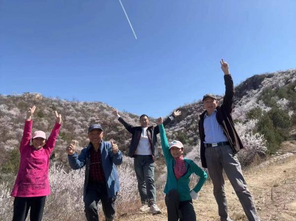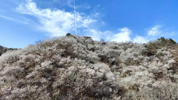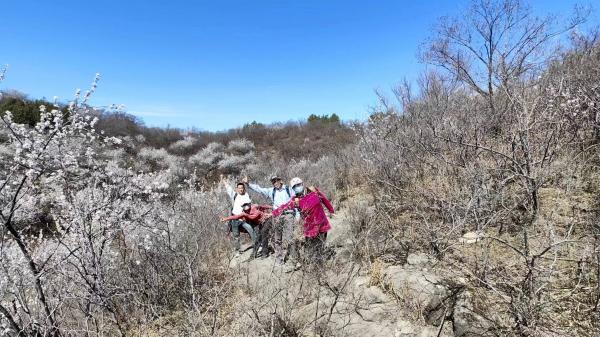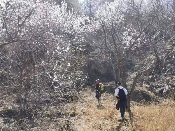 又经过两次后队变前队才来到山脊,进入此程观赏山桃花的精华区,比延庆莲花滩-曹碾的心花怒放毫不逊色,甚至可说有过之而无不及,因为此处的视野更加开阔。今天的天气十分给力,个人体验好极了。
