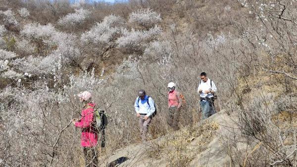 周二路过关沟,虽然能见度很是不好,还是看见山桃花已经大面积开放,盘算着这个周末应是山桃花的最盛开放期。查天气预报,周末两天都是晴天,而其前后都不咋地。正所谓机不可失,时不我待,虽然时值清明节前最后的公共假日,明知交通不大方便,还是开了课题。计划是从海字村下公交车后,从安四路右转到达百合村,“先北上昌平怀柔界山上的山神庙,山脊上向左(西)横切一段,然后再南下翻一道梁”,多转转,只为了能多看看这一年一度的山花盛景。