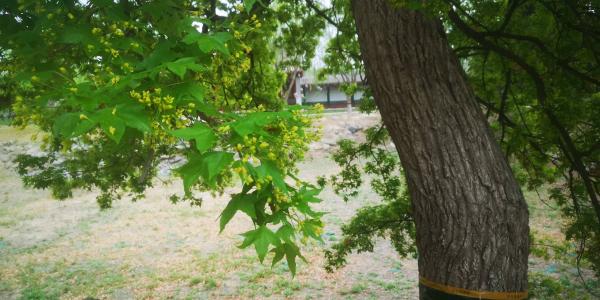 因为新开馆的缘故吧,室内有浓重的油漆味道,其他人都没有进入,只有我一人在各个展室盘桓良久。出来外面的公园,原来行宫里的东西两湖已经干涸,还没有蓄水,不过岸边的花树开的正好。