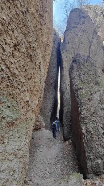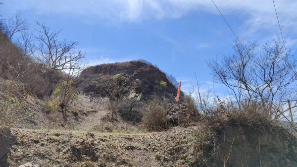 13.30许,到大梁山脊,看见山下的国道,继续沿轨迹行进,下山,课题完成在望。这里还在景区之外,到了远看像是元阳石的地方,看见沟对面的巨石,我有些印象,10来年前我初来碧霞山的时候,曾在那附近下山,但不是今天的方向,今天应该反向行走,穿过碧霞山景区。但景区经过多年荒废之后,景区外的山路更不大好走了。