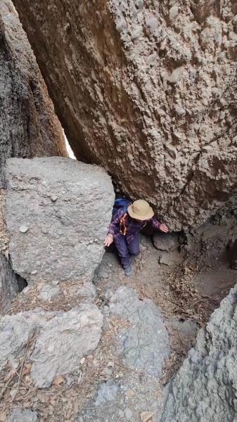 前去巨石的路径不明显,按计划轨迹应当向左,但因为轨迹上拉海岭隧道偏移的缘故,南瓜叶、ssg和我选择先右下再折回,水怪和山桃木则坚守轨迹。这一回,是我们仨错了,不得不在陡坡上上上下下,费劲才来到巨石下,跟他俩会合。