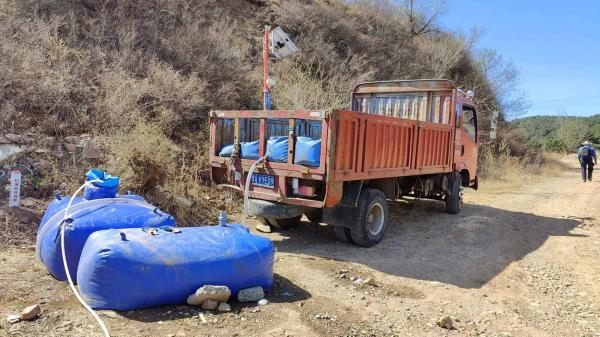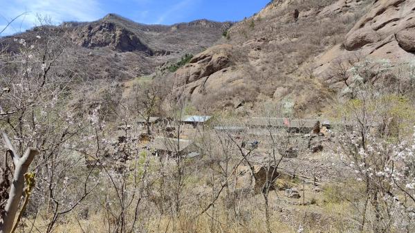 然而,这里却有人在修房子,一个人,且只有一个人。材料先用拖拉机拉到下边,然后人背着彩钢保温棉上来,砖头水泥则由骡子驮着。这里不缺水,拍照点位于沟底,两侧各有一口水井。人在这里,主业放羊,饮羊用水另有水源。这里平常只有4个人,而今天,连他只有两人。