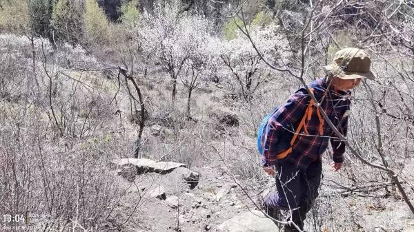 京都水怪、南瓜叶、山桃木、ssg1961和我之外,课题组又多了一个人,是京都水怪的小弟星空,他今天休息,得以分担今天的课题。水怪的报告里曾多次出现星空的名号,我也曾经见过他,山桃木更是跟他一起出走过。水怪说,他也在社里注册了,只是懒得写报告,所以才没有报名。星空年轻体力好,个子高步子大,又提前很好地做了功课,很多时候都走在队伍的前面,最后在抵达大冰沟—碧霞山山脊后后,独自一人进入碧霞山景区抵达姜台路口。