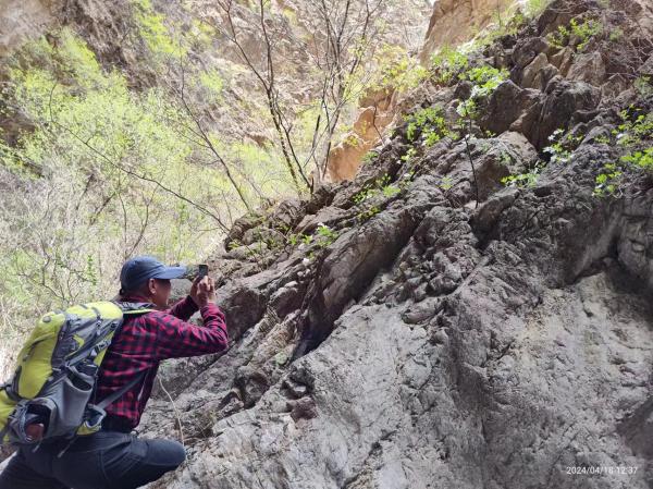 向下又一道壶,没有留下任何人工建造的痕迹,有去无回。谨慎起见让爱四季前往探路,再往前又遇到更大的壶,台阶悬空难以跨越。借助绳索水怪协助爱四季返回,沿沟回到台阶路的起点。时间尚早(不到13:00)开始探右侧山脊,高处有高压线塔有梯田,再次出现机耕道。至此我才明白遇到壶的那条沟我分担小蛇的课题曾经走过,就是山神庙通往九河沟的村道,当时没注意跃进村下来的果园,也不记得这些冲毁台阶的壶,因为那次一个姓胡的尾随课题最终不得不协助他一起安全出山,我们错过了火车,课题最深的印象不是路而是这些意外。