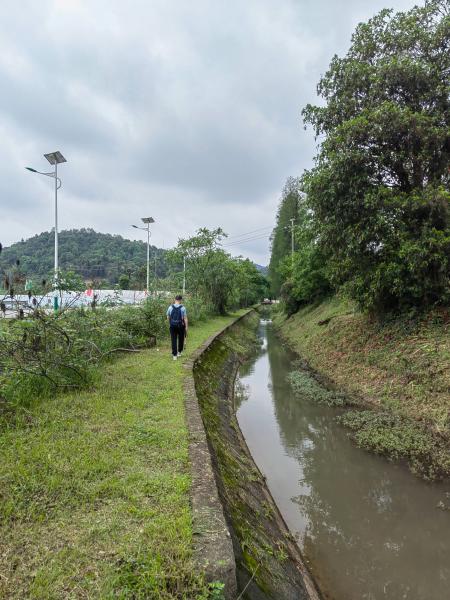 沿着河岸一直向前