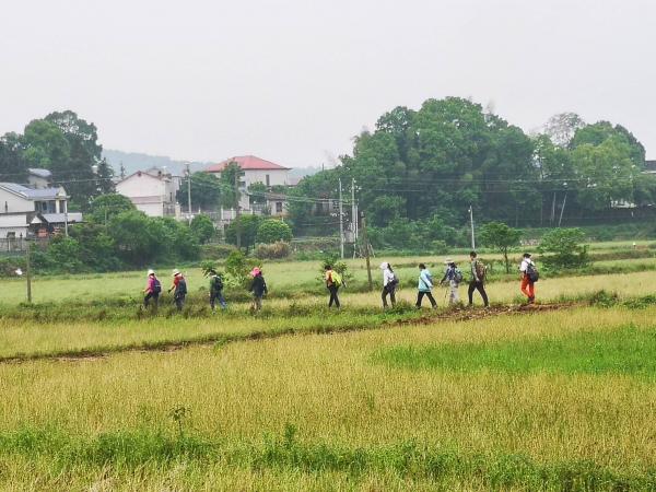 上山时树叶有水会洒在衣服上,地上松针落叶松松软软,一行人穿梭如织,浩浩荡荡在绿荫山间。