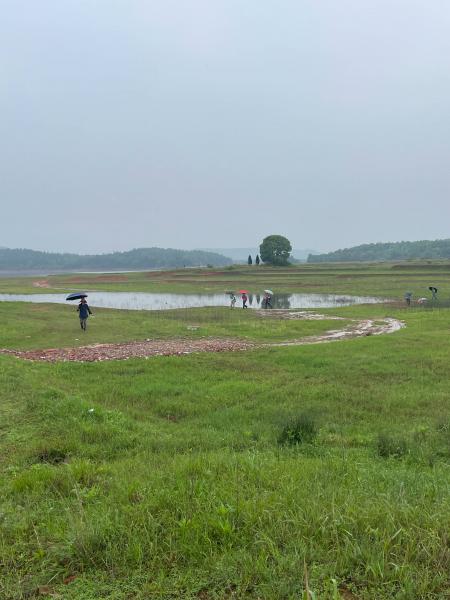 午间休息时下雨了,上一次车轱辘滚过的路,今天全用脚丈量,发现了更多的美。