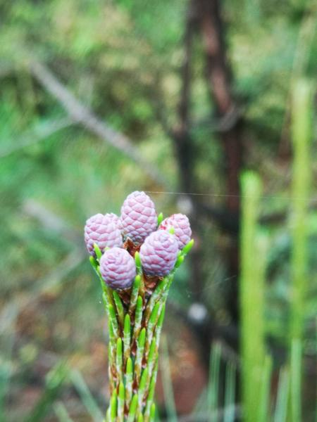松树开花🌼,第一次见粉紫色,以为是松果球,现在才醒来,松果球是在树杆树径边吧,不在新长的嫩芽尖。