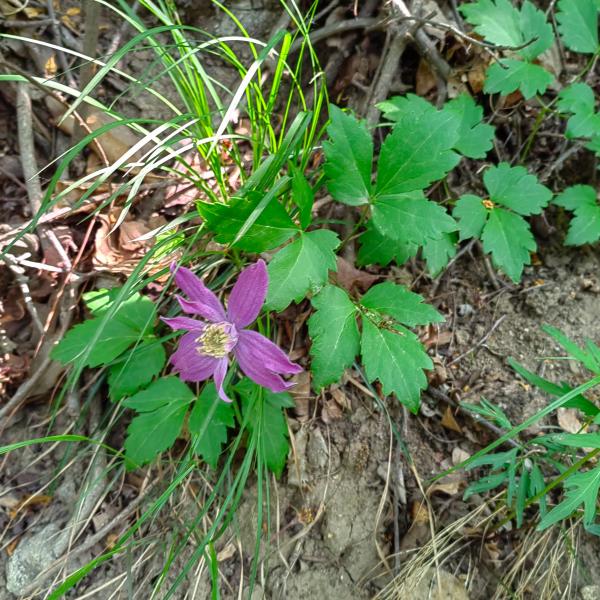 铁线莲:是毛茛科铁线莲属草质藤本。茎被短柔毛,具纵沟,节膨大;小叶纸质,窄卵形或披针形;花序腋生,苞片宽卵形或卵状三角形,白色;瘦果宽倒卵圆形;花期4-6月;铁线莲之名始见于《花镜》,云:“铁线莲一名番莲,或云即威灵仙,以其本细似铁线也……叶类木香,每枝三叶,对节生;一朵千瓣,先有包叶六瓣,似莲先开。”其本(根)“细似铁线”,其花“似莲”,故名铁线莲。