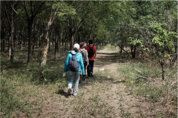 今天的路线,如果沿着省界走,形状像一个套子,向东南方向倾斜,套口就在凤河营-延寿营一线。但我们并没有走到地图上的省界,就被一道东西方向的围网挡住了,一个牌子立在网前,写着“庙洼营村护城河防线公示牌”。牌子上还写网外农田和企业的面积。那都是北京的辖区,与围网一起构成了宽阔的“护城河”。按照这个命名,地图上的套形区域可以叫“河套”了。