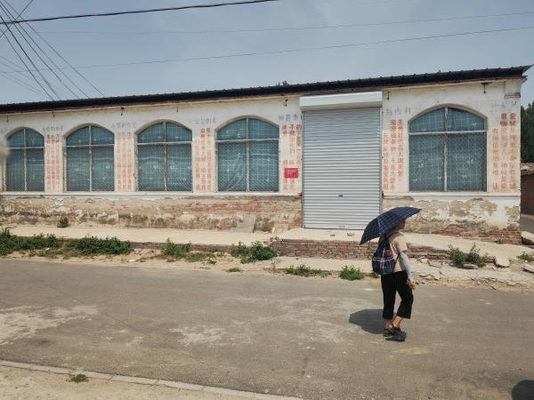 我们只好折回,找到一条东西向公路,向东,上京福路,南侧就是进京检查站。公路被西侧的围网和东侧连续不断的建筑封闭,我们无法继续向东靠近规划路线,只能向北,直接到终点——凤河营村。在村里访问了一个教堂,外形看似普通的礼堂,外墙上刷着的经文泄露了它的用途。村民说教堂已经关闭了。