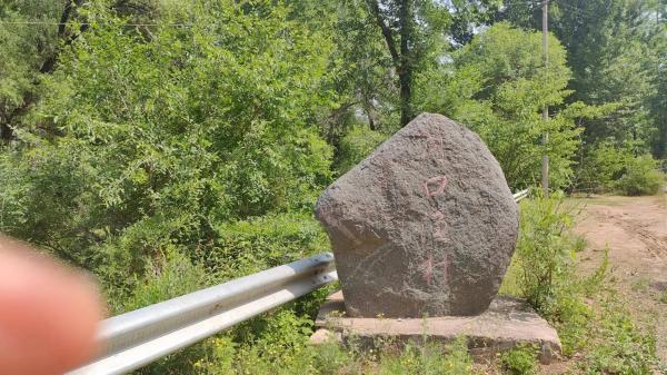 终于见到了保护区界桩正面,此前所见界桩,文字都在悬崖那面,恐高者不宜绕过去察看——界桩或在路左,或在路右,但有文字的正面都冲向西面——话说大滩无人区在河营路以东、千小路以西、滦赤路以南、四宝路以北。