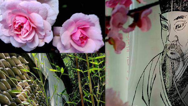 植物园内溜达,箫吟清带路曲径通幽,四方亭匾额‘师竹轩’。大德赵朴初居士题字,对联:竹耸清高能载史,池涵净澈可流殇。‘耸’字没猜出来。路过‘十方’里面有展览,工整清晰的图片,展厅后面