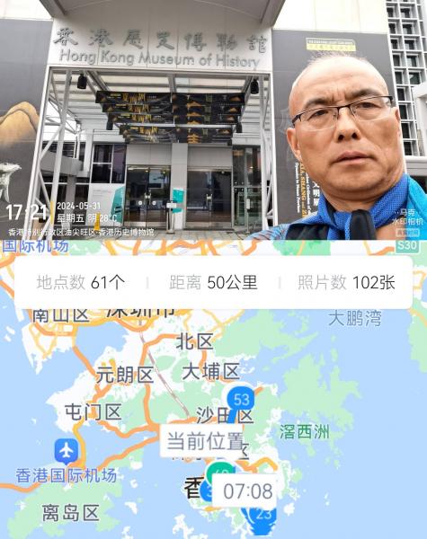 早晨坐118路公交车,到鲤鱼公园站公交车没有及时变字幕和报站导致我多坐了一站,以后要随时查看地图,要是大站就麻烦大了。换乘9路车,下车车站就在龙脊路段入口,这个司机好,人家车不走等着我走正路,我和人家比划先拍照个站牌再爬山,司机微笑着车启动离开。龙脊线确实美丽,两侧都是海洋村落白色沙滩,山坡度不大,还没有北京西山森林公园高,有瀑布、溪流、雨林。环境友好适合溜娃,要不然都说这里是偶遇明星的佳地呢,明星身子骨强的不多,说业务忙都是遮掩鱼。途中和一个遛弯的老汉聊天,他说香港退休可以拿到年薪25—75万元,但普通人买不起房子大多租房住,他自己20多年前买了个25平米的房子三个人住,他还给我比划厨房这么小卫生间这么小,然后哈哈笑,昨天房间有个台湾小伙,他说这里物价比台贵一倍。3个小时就到了大浪湾村,在龙脊是只遇到了2个人上山 。9路车每天到这个村只有两班车,其余时间小巴车代替,20分钟一辆,比大巴车贵2块钱,就是满座就不让上了,这里有个村规要求必须满足本村村民优先上车但仅限制4个名额。在筲箕湾(地铁站)有个集贸市场,西红柿最便宜卖到10港币一磅,大部分是14—16元,超市生鸡蛋3元一个,茶叶蛋卖5元。我在这里吃了碗牛蹄筋米线30元。我坐上了铛铛车,司机说下车刷卡,走了四十分钟走到金锣湾也就是7公里左右走了46站,有时候不到100米就是一站,马车速度手扶拖拉机感受。坐的人还挺多,这时从值班室来个人和司机交代了一下,然后广东话播音我也听不懂,全车人就都下去了,我要刷卡,司机摆手说不用。从金钟坐东铁地铁线到香港中文大学17.9元昌,我进地铁就看前边人排队,地铁车厢两个门只开一个门,座位是高靠背对面坐我还奇怪呢又看到车厢告示进这个头等舱必须提前买票或者八达通打卡,下了车我在站台上看打卡机告示说不签到发现罚款1000港币,吓死我了差点破财。回程从大学到红磡7.8元,不比公交车贵,有时还比公交便宜。这个大学进来只要登记一下证件即可,有山有水还有教堂。还有植物园,校友路径,我特意买了一份纪念品还加盖了纪念章。出来红磡地铁站就是香港理工大学,继续走就到了香港历史博物馆,只是这里唯一的一个展览是河南省博物馆办是夏商周题材展览。对门是香港科学馆,只是收费我就没去里面看。这边地铁展览馆都没有安检,地铁卫生间在闸机外边很方便过路人。一天下了数次雨有大有小,只是都像程咬金的三板斧,一会儿就出太阳,一会儿又雾气昭昭。