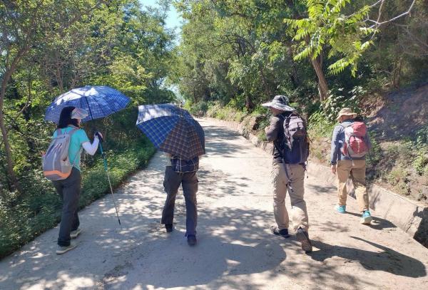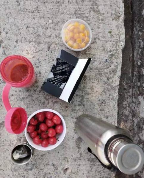 在路边的树荫下,分享了当同学带的水果泥,尝了尝,应该是3种水果的混合物,味道不错,大家都分享完后,最后剩了一点,当说,保质期就半天,不能剩下。