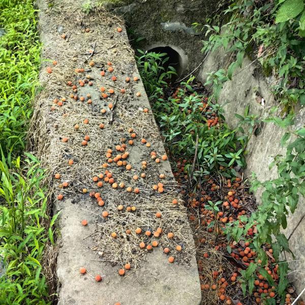 第二棵杨梅树是红色的杨梅,地上掉了好多,大家一阵采摘,偶尔路过的当地人报之一笑,这种杨梅,他们是不入眼的。