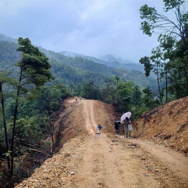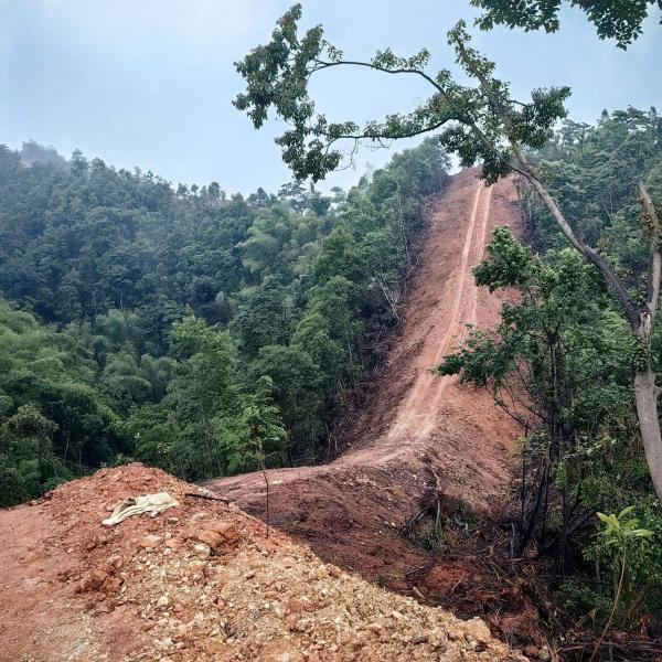 但走了一段之后,大家见到防火道就在山谷边,就去看看,发现是石子路,没有烂泥巴,于是,就忘记以前说过的话,一起上山了。
