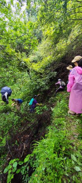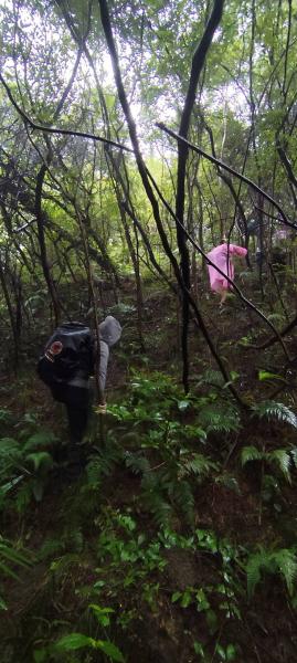 上次一起走的伙伴们还在继续向上,在走到上次午餐的地方,我觉得没必要去了,这种天气,山里湿度太大,一个多月过去了,草木更茂盛,翻越这座山的难度更大,与其到时原路返回,不如现在返回,走大路结束今天的课题。