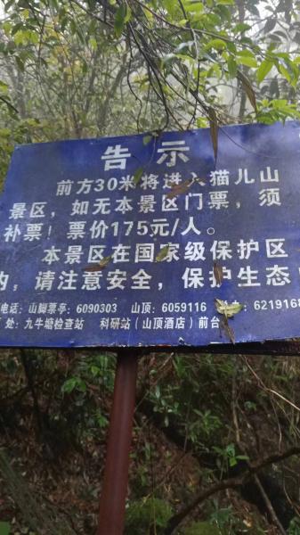 上升到1800米方能看到山下,上升到了1900米,看到景区补票告示牌。