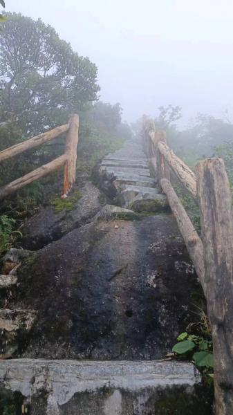 第三天,金紫岭,新宁县第二高峰,海拨1772米,金子庵,历史悠久,香火旺盛。从舜皇山出来,没有想到12公里长类似机耕道,山路十八湾,一路坑坑洼洼,到里竹山村路变好。早晨赶往土地堂,小路上山。
