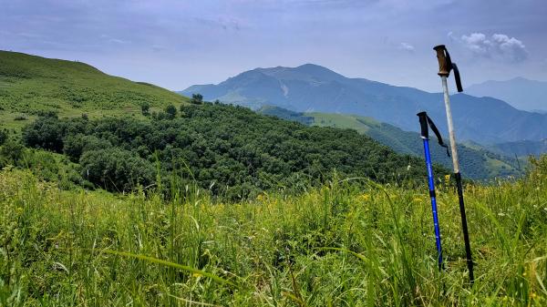 上山先爬一段大坡,云手同学走在最后,比其他人慢了五分钟,