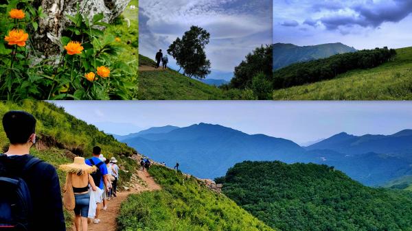 草甸上,沿着小路感叹风景,大自然馈赠触动深邃的灵魂,任时间飞逝,大美灵山,珍藏永恒瞬间,铭刻属于你我的痕迹。