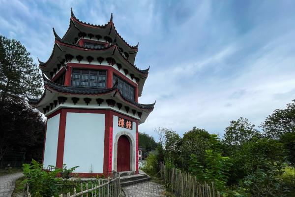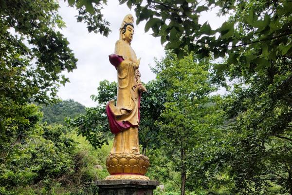 十一时,拜别仁奉师父,启程登山之路。从黄龙寺到登山道的路口大约6.5公里,要经过黄龙村、小庄村、太阳垄村,中间翻越一座600米的小山。刚开始,体力好,一个小时十分即抵达登山道路口。远眺只角楼,云雾缭绕,颇为神秘。沿一段溪流向上,经过一片茶园,硬化路的尽头,可看见右侧林中一尊金色观音像,左侧则是一座小寺庙——平石禅寺,未见人打理,但香火袅袅。据说平石寺,建与于后周,比黄龙寺还要早,是黄龙寺的重要道场。寺后不远处有巨石卧于溪水旁,上有“汨水源”三字,当地人视此处为汨罗江的源头。那溪水清澈见底,掬水洗脸凉爽惬意。