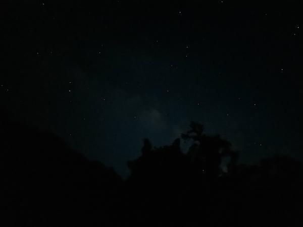 天黑透了我们还是没有走到营地。就着头灯和手机灯,大家前前后后的往终点赶。姜婷走的腿不受控制了,也不时反胃了,这是虚脱的一种反应,要赶紧到水泥路,这样好歹可以车来接她。漫漫机耕道,就是不见水泥路。走啊走,突然就走上了水泥道,姜婷走不动了,静水和我还背了一段路,姜婷也实在过意不去,我们仨就直接躺在水泥路上休息看星星了,还是那么多那么亮那么扑闪扑闪的星星,间或有萤火虫在飞。真是美好的夜晚。躺平了几分钟,好像听到忆梦姐在底下喊我们,原来真的只有几百米就到了。一路搀扶着姜婷往下,想着有溪水冰镇的西瓜等我们,不由加快了脚步。等我们到达终点已经是20:43了。终于,我们平平安安的享受了这夏日里的冰镇西瓜。