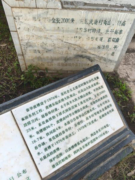 曾参与春华渡槽修建的曹福潜说:“春华渡槽共108个桥墩,桥墩之间间隔20米,每个桥墩由8个石墩砌成,每个石墩重量不等,最轻的也不低于十几吨。没有大型起重设备,我们只能靠人力和简单的器械用杠杆原理将石墩拉上去。上百人喊着号子,齐心协力才能扶一级台阶上去。”曹福潜用手抚摸着渡槽桥墩粗糙的表面,感慨良多,经过数十载的风吹日晒,笔直挺立的桥墩显出了厚重的沧桑感。