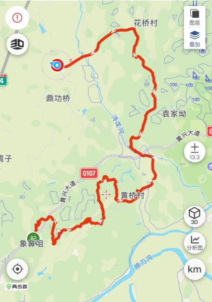 路线:象鼻咀-黄桥村-花桥村-鼎功桥