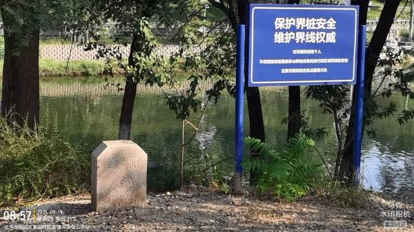 过了京藏高速,有朝阳界碑标注“3A”,河北岸海淀界碑标注“3B”。河南岸有一家高尔夫球场门开着,进去没走多远就给我劝退了,说有打球的会有危险,前面没有门,后一句话明显谎言,因为东边不远处两个门都开着呢。