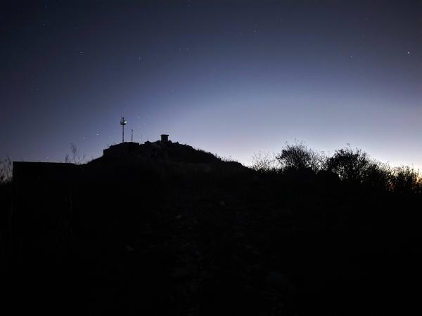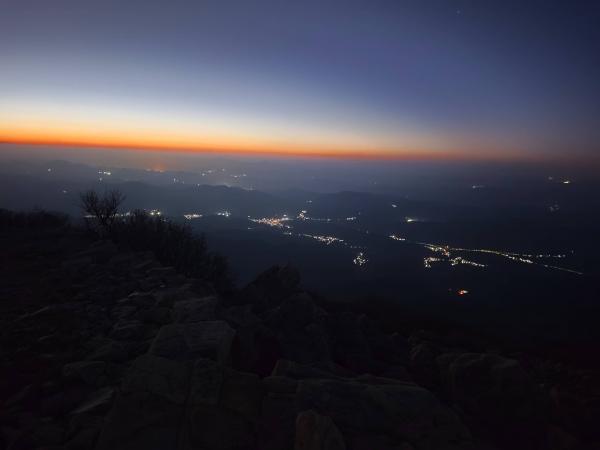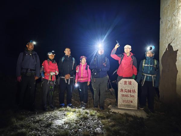 这是典籍中仅见的关于登山神的记载。我们遵照神启,向着傲立的铁杆、沉默的瞭台、灿烂的星汉疾进。遇到特别难以通过的地方,就从右侧绕行,果然,路好走了些。18:40终于登顶。接下来还有8公里大路,于是又匆匆下山,直到麦子地,看见空旷的黑暗中忽闪着接车司机手机的微光。
