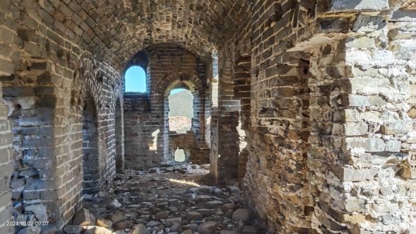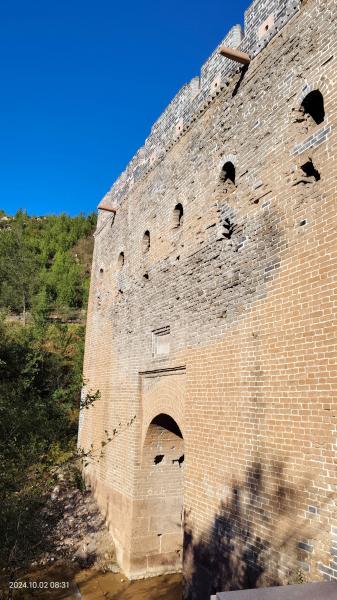 近年来,卢龙县对刘家口过水关楼进行了修缮。我们由此上山,一队东行,天上碧空云淡、晨光熹微,左面矿坑裸露、风车懒转,右边车辆咫尺、行人宛然,前路墙体连绵、燧楼接续。