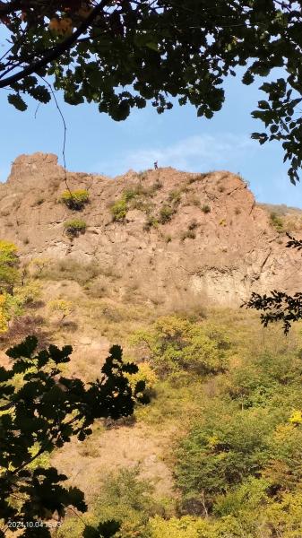 不料10月1日起,都山进入防火季,大窝铺已设岗拦阻。既来之,则安之,大家观察周边山势后,稍后撤从右沟进。这条V型沟谷近遭洪灾,小路半毁,乱石横生、断木支离。我们翻过较低的左垭口,北沟出现了非常成熟的小路,堂堂省级自然保护区还出现了捕鸟网,沟底的梨子汁水丰沛。快速通过北沟村,柏油路来到铁门、围墙、刺网和交叉摄像头前,小五也不过如此罢。