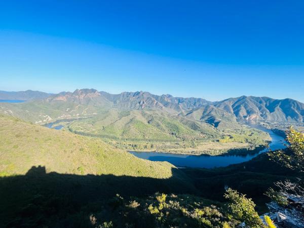 终于看到了桃林口水库,碧波一觞,足以醉人,秋风七弦,自来动听,青峰数点,诚可眷赏。