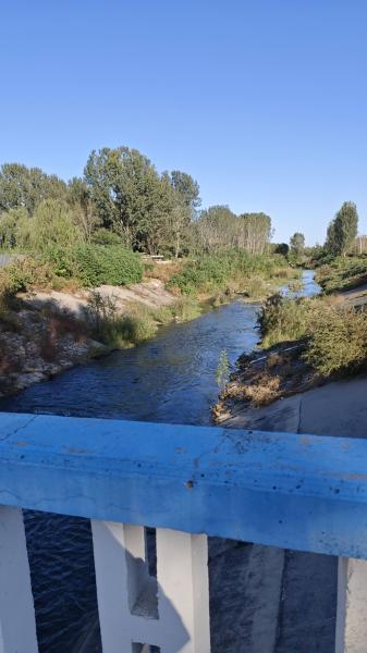 河边的路被唐通线截断,我们不得不又过了一次检查站,查了身份证。沿唐通线向西走到红绿灯,右转,回到河边。这一段河岸比较荒凉,没有人工维护的树木、花卉。河边这条路走了一会儿,被一个门挡住了。门内只是平平无奇的农场,却戒备森严,让人百思不得其解。农场占据了几乎全部河岸,除了无法耕种的临河陡坡,靠河的一面也拉上了铁丝网,防止有人进来拔他们的萝卜。陡坡上满是爬藤,隐隐有一条小路,似乎可以绕过农场。