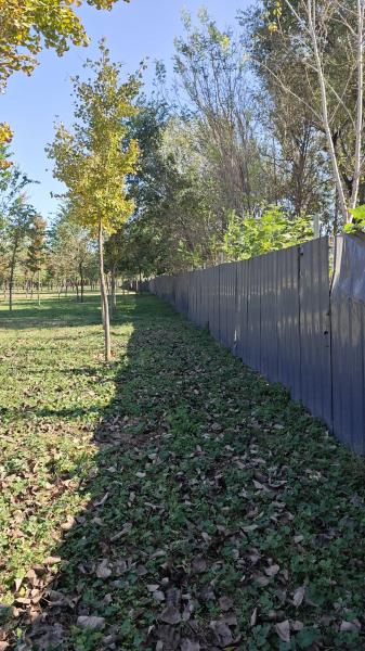但这次折返并不是完全走原路,而是进入两道栅栏交汇的区域,期待找到一个可以一推就开的接缝处。但并没有这样的环节,两道栅栏牢固地拧到一起。但我们不想再屈服了,栅栏旁边那棵悬铃木帮了我们,算是天降悬铃木吧,我们翻过栅栏,发现已经脱离了农场区域,不用跟那对态度不友善的老夫妻周旋了。着陆处是一个公园。
