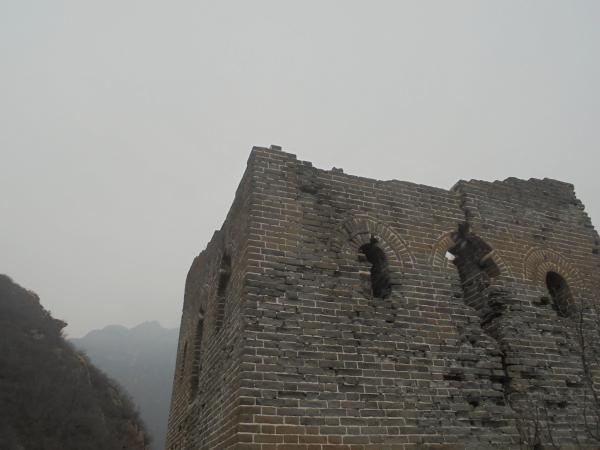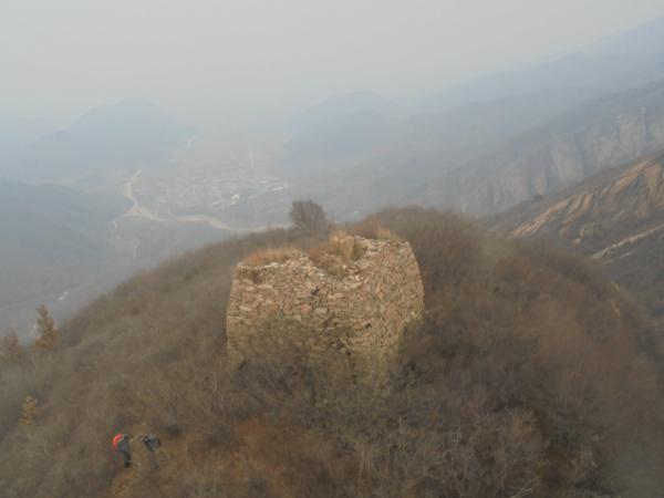 5.沿山脊下降不远,路过一藏身洞后,即可至白道峪北一楼,该敌台编号密云582号敌台,为3*2空心敌台,保存相当完好,北侧券门可轻松进入,蹬道可上二层,视野甚为开阔,北可仰五座楼群仙翔集天穹,南可瞰密云城嚣尘卷动大地。582号敌台南侧十数米处另有583号敌台,为山石干砌实心敌台,保存较为完好,与前者一北一南,可作为嘉靖、隆庆-万历两阶段蓟镇敌台建设之鲜明对比。