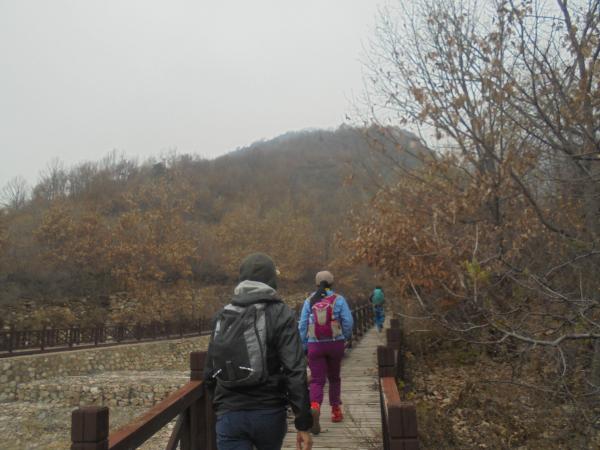 早7:10清河站乘坐市郊铁路怀密线S501次列车,8:39抵达黑山寺站,下车后沿站前路、河北路步行至密云54号城堡处,右转过铁路桥循木栈道上山,上山处有护林员值守,但并未强行阻拦走友进山。溯泄洪渠堤上的木栈道步行深入,至黑山寺村北沟口,遇一小水库,注意这里的上山口不在大坝那里,而是在大坝之前泄洪渠西侧,走友如果闷头不看轨迹则很容易错过。