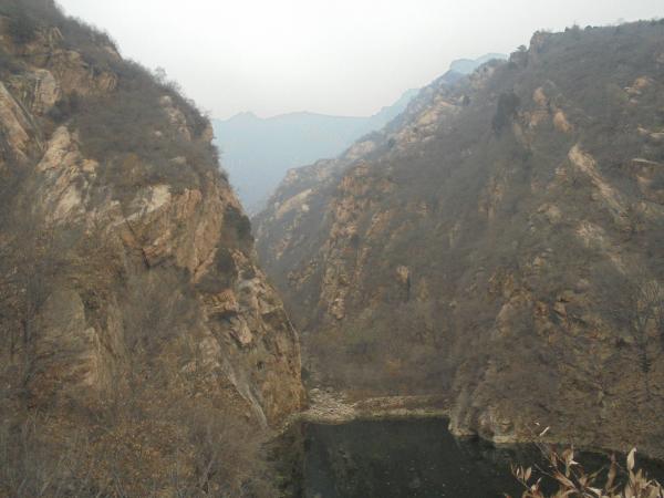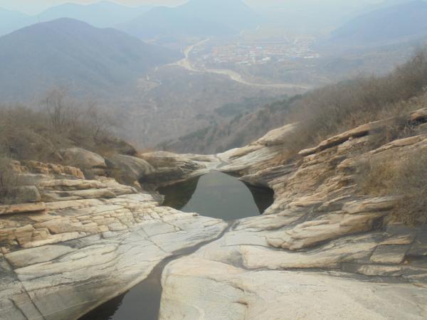 7.大光坡下方有一三岔路口,成熟小路沿山脊下山去往白道峪村东,此行走友则在此右转向西,向白道峪水关行进,开始一段可见模糊路迹,不远至瀑顶一小水潭处,清波澹澹于千尺冰寒以上,玉涟回旋于雪壁鹰巢之间,别有一番风格。