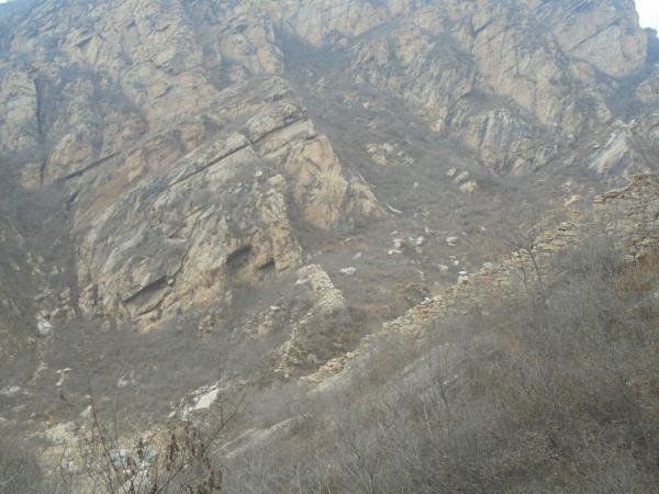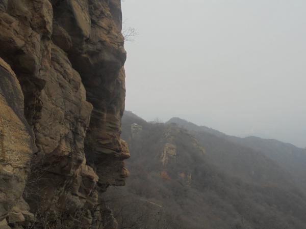 ----11月24日,参加㞱㞥岁岿社海运队大良峪寨活动,自清河站乘市郊铁路怀密线S501次至黑山寺站,借大良峪寨上山登黑山寺北段-白道峪东段长城581号敌台,下小崖攀光坡闪避龙鳞虎爪打卡北一楼,越瀑顶清潭穿幽僻石缝至白道峪水关,后继续行走白道峪西段长城,在绝壁巉岩间隙辗转腾挪,访绝壁楼、一眼楼,登高尖楼、大良山,钻荆棘灌木经蜱虫惊魂终顺利赶上牛盆峪公交末班返程。此日大槽压境,阴云密布,北京草木已颓、初雪未至的探路黄金时节已至最后一天,一行人,从雾海深渊中到来,追随古人足迹,沿边城古道,登上高尖敌台,在那万丈高崖以上的半空中,湿润的气息,正是汹涌,感受者循着东风吹拂的方向,远望而去,在那里,一堵通达至天顶的白色幕墙缓缓移动,旧时节的喜悦与悲歌,向天际渐渐飘远,在那白色幕墙以后,蕴藏的,已是下一种时节、下一种神明、下一种信念……
