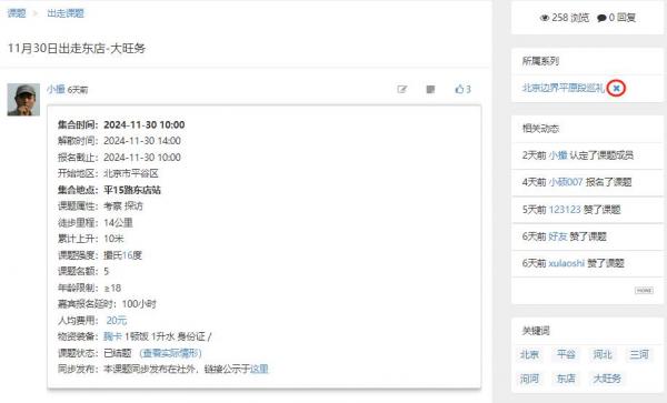 在课题详情页“所属系列”的标题后方,有一个叉号,只有开题人或系列的发布人可见,点击叉号,就可以将课题从系列中移除。