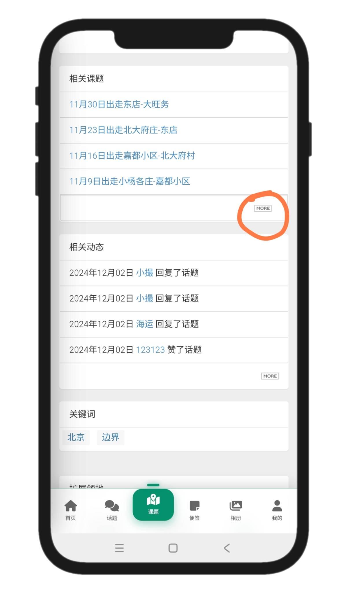 每个系列,都可以与一批课题相关联,相关的课题目录会显示在话题详情页左侧边栏(电脑)或者下方(手机),最多显示5条,如果关联课题目录超过5条,则下方显示more图标,点击图标,则分页显示全部关联课题。