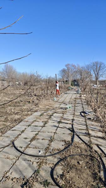 我沿着一条路向北,穿过一片果园,园子里木桩上绑着淘汰的服装店模特。