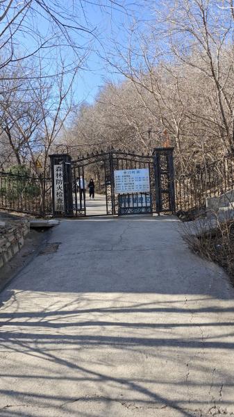 家属院通往百望山的小门上写着开门时间,但并没有遵守,理论上现在已经该关上的,却依然开着。