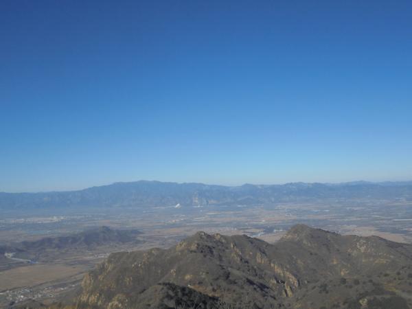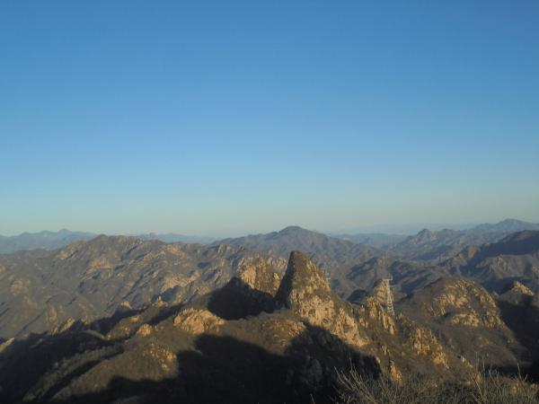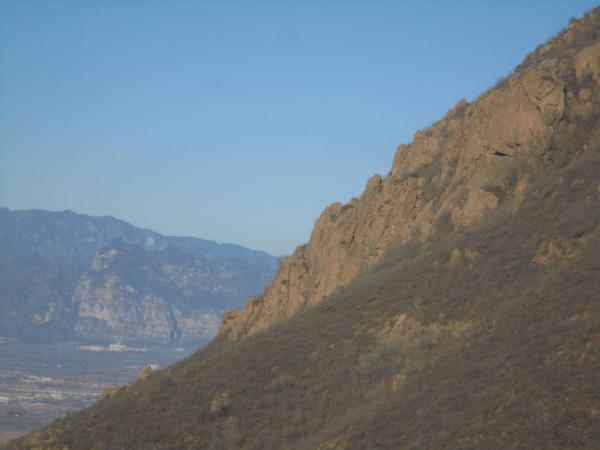 1.S为上石峪北梁,海拔787米,距离红马梁约17.2公里;M为蟒山,海拔659米,距离红马梁约15.1公里。B为东Ⅰ峰,C为东Ⅱ峰。照片拍摄地点为西峰A,实测海拔约904米。