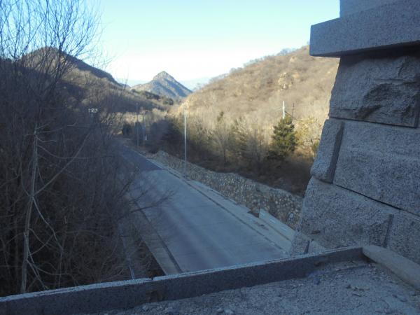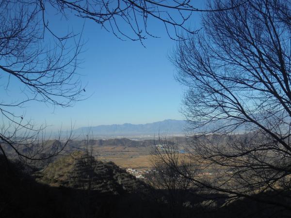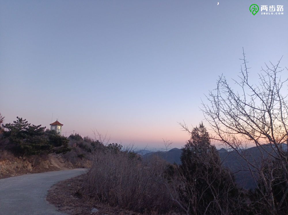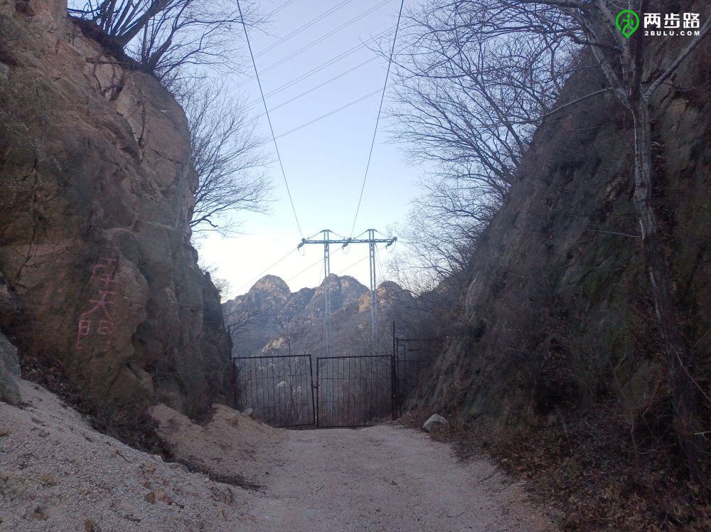 16:27,抵达尚有村民居住的梨园小村,此后直至碓臼峪的6公里路,均为机耕路、水泥路等宽阔大路,没有任何难度可言。中途翻越一逼仄隘口称“南天门”,内设有上锁铁门,走友可从西侧(下山右手边)的铁门与崖壁间钻过,后续自水泥路盘旋下山至海拔约450米处,根据两步路路网,东南侧(下山左手边)有小路可抄近道直接下山至碓臼峪村,此行天色渐暗,见路迹不甚明显,安全起见,还是走大路一路小跑出山。梨园水泥路与双龙山水泥路交汇处,为明代十三陵诸外口之碓石口所在,北侧山岭上有嘉靖年间所建石墙及墩台以及,此行至此已暮色四合,不见龙形龙体,唯有昌平城区在天际华灯初上。