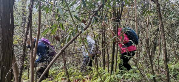 然后,我们被一条很好的水沟吸引了目光,正好它的上游是我们要去的方向,于是,我们就进去了,队友中有人说,这个山谷,春天来有好多鸡婆笋。