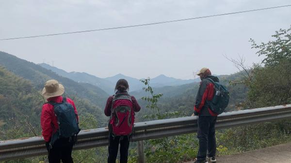 提着一袋瓜蒌往回走,放到蛮王庙,正好看到他们四人过来,汇合一起走。大志只穿一件衣服,说还汗湿了,我是原封未动,阳光下棉袄未脱,不冷不热。九个人一起走,整体步伐就慢了,前前后后拉开距离,沿葛家山谷往浏阳发现走。一路很多狗狗,五黑、大黄、四眼,白色萨摩耶拴在树上如田园犬一般,但它们都很友善,摇着尾巴走到我们跟前,带路跟随。