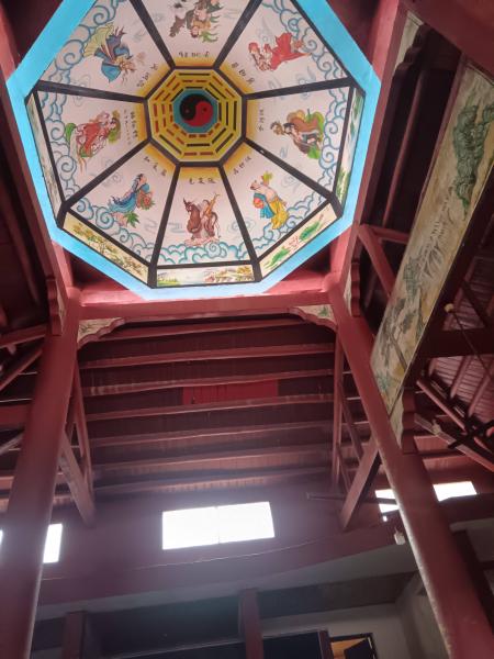 中午十二点半来到金源村白烟组,太阳下屋前路餐,开题人催我们快点,然后左边上个小坡,这成了我今天唯一集体爬山坡,很快就到了柿子树对面。他们走大路的拐个弯早到那里,没有画面中的橙黄橘绿,一片枯死,不是柿子掉落,而是去年结多了,今年休息,没有结果。不到黄河心不死,到了会怎样?摘果神器今年无用武之地,不给机会,那就收好,来年继续。有人快速前进,余下13公里多到金阳,原路返回约6公里,我们又分两路,四人慢悠悠去参观保民山寺庙